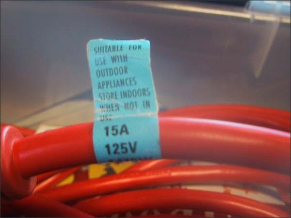 I have already stated we use 14ga, 15 amp indoor / outdoor extension